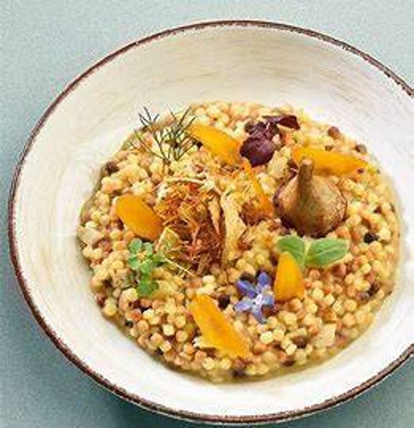 Une petite perle de blé dur toastée typique de la cuisine sarde